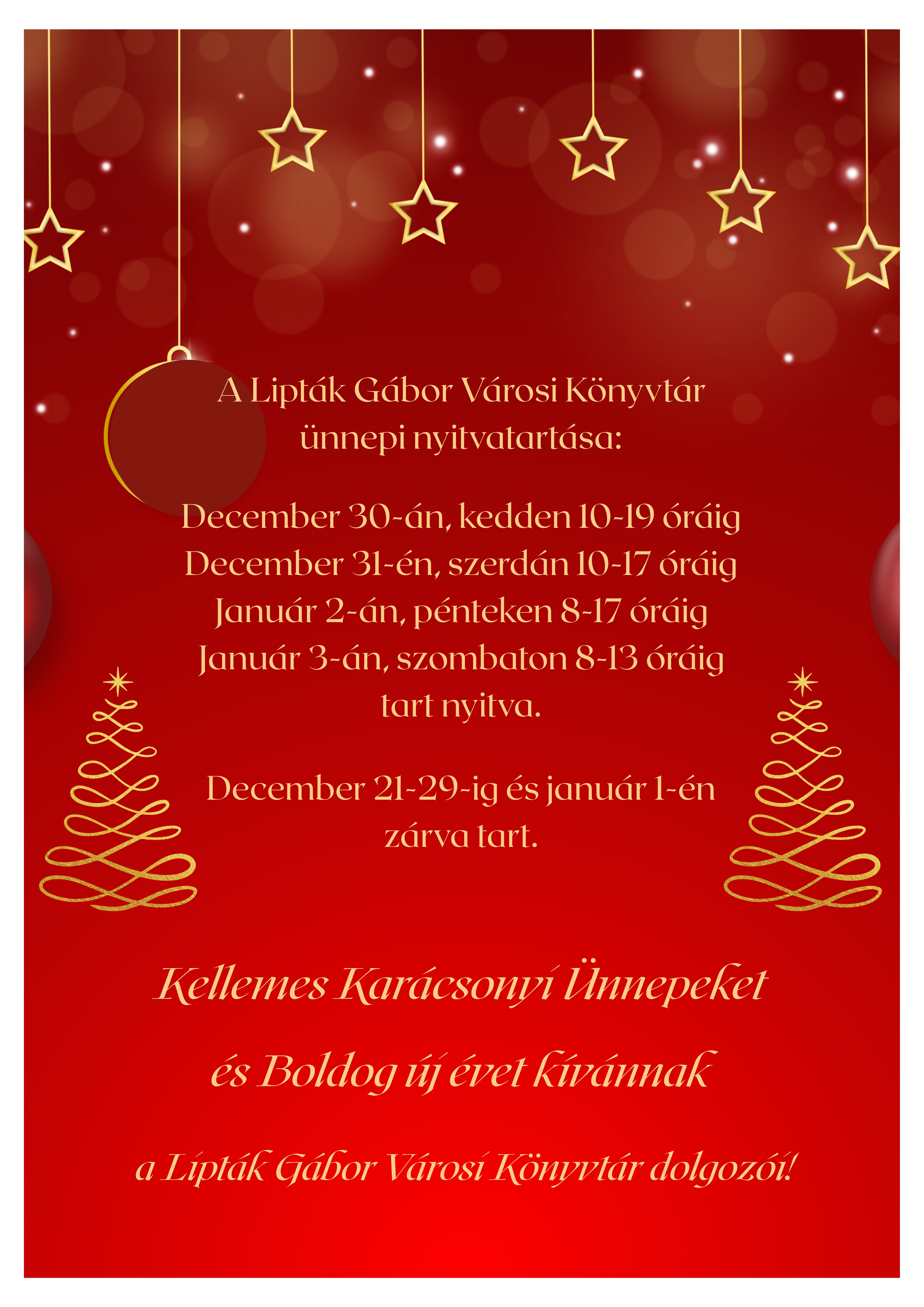 Téli szünidei nyitvatartás